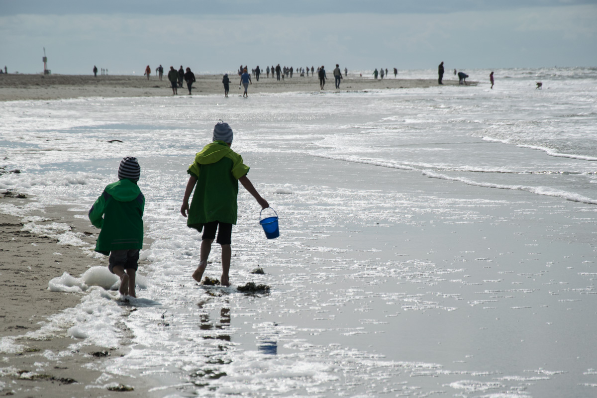 Gerade für Kinder ist es faszinierend zu sehen, dass einmal das Wasser da ist und beim nächsten Mal das Wasser weg ist. Die genauen Zeiten für Ebbe und Flut findet ihr im Gezeitenkalender, der überall erhältlich ist bzw. werden die Zeiten von Ebbe und Flut auch an den Stränden angeschrieben. Bei Ebbe lassen sich die Strände nach allerlei Dingen absuchen: Natürlich Muscheln, aber auch Strandgut, das vom Meer angespült wird, ist für die Kleinen interessant. Oft ist es zwar nur Müll, den man findet, aber manchmal auch tolle Dinge, mit denen man etwas basteln kann oder die in eine Schatztruhe wandern.