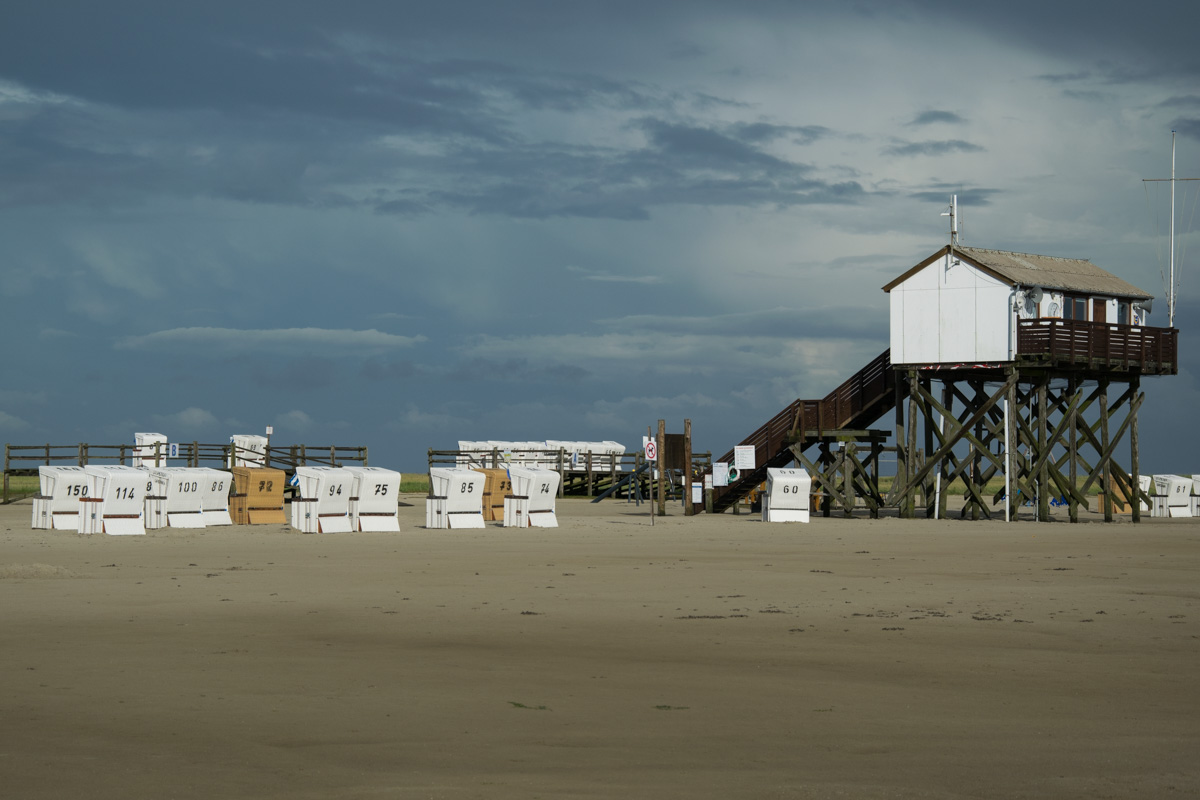 Entlang der Küste der Halbinsel Eiderstedt gibt es verschiedene Strände. Besonders weitläufig sind die Sandstrände bei St. Peter Ording. Hier gibt es verschiedene Strandzugänge, angefangen von Böhl im Süden bis hin zu Ording im Norden. Zwischen Ort und Strand liegt teilweise bis zu einem Kilometer Weg, der über Holzblanken zurückgelegt wird. Die Strandbesucher erwarten tolle Sandstrände, im Norden sogar mit Dünen. An allen Strandabschnitten finden sich die typischen Pfahlbauten, die Restaurants, Wasserwacht und Toiletten beherbergen. Natürlich können an allen Strandabschnitten Strandkörbe, gemietet werden. Der Sand ist fein und ideal für die Kinder! Sie können sich stundenlang mit dem Bauen von Sandburgen oder dem Graben bis zum Wasser beschäftigen oder Strandsegler und Kitesurfer beobachten oder Drachen steigen lassen. Ach ja, baden – ja baden kann man natürlich auch. Für die meisten reicht es allerdings, mit den Füßen im Wasser zu sein, wobei einige auch ganz ins kühle Nass eintauchen. Mir war es ehrlich gesagt, zu kalt…